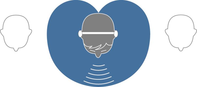 • 단측 마이크: 착용자의 목소리와 주변 소리를 동일한 측의 마이크로 샘플링하는 방식입니다. 주변 환경이 시끄럽거나 착용자가 집중하는 상황에서는 착용자의 목소리와 다른 사람들의 목소리를 구분하기 어려워집니다.